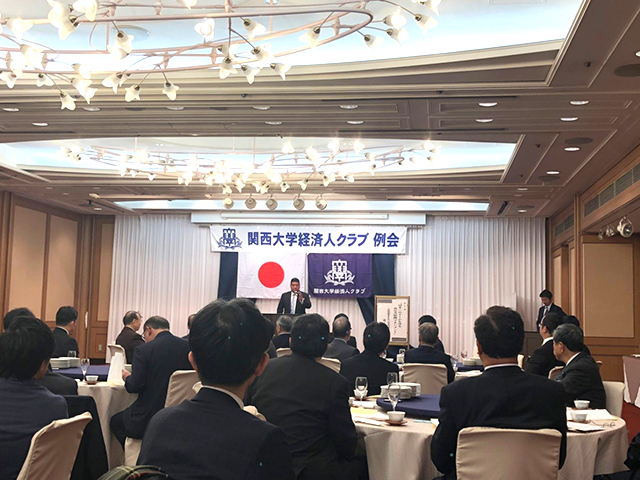 経済人クラブ(生田圭一会長)第221回例会が、2月4日に大阪新阪急ホテルで開催された。出席は来賓6人、新入会員1人、ゲスト11人を含め総勢65人だった。