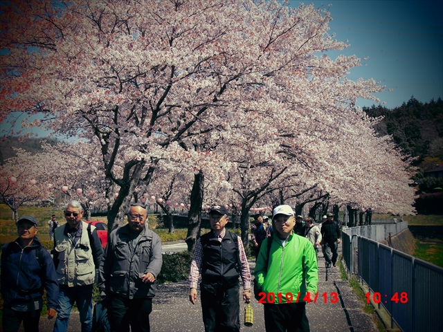 川西支部歩こう会 春のウォーキング会が絶好の晴天の中行われた。地元猪名川町のさくら通りを約1時間・4km歩いた。季節的には桜花も既に散っているのかなと思っていたが、ちらほら散り始めていたものの満開のころであった。まさに平成時代の幕引きを象徴するが如きの桜模様であった。