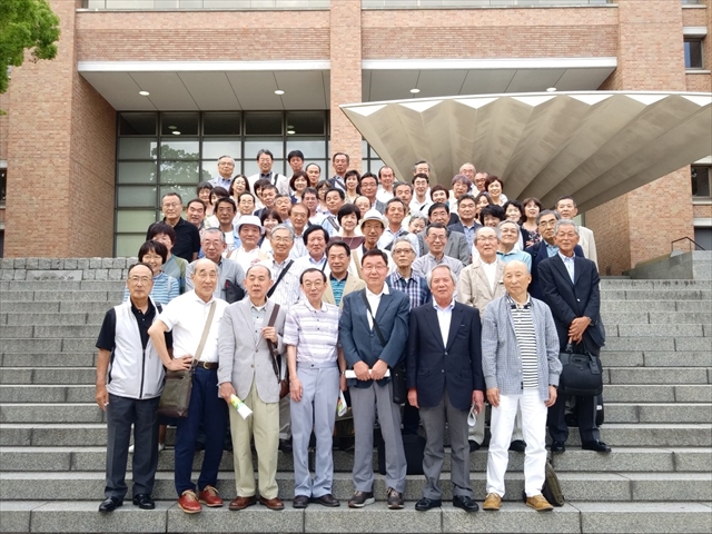 本年2019年がマンドリン倶楽部創部100周年にあたり、6月8日有志OB約70人が関西大学内のレストラン(チルコロ)に集まり、合同の記念懇親会を開きました。卒業以来、初めて大学を訪れ大きく変わったキャンパスに驚いている先輩もおられました。何十年かぶりかの旧友との再会に喜びをかみしめている姿も見られました。約2時間の楽しい歓談の後、青春時代を懐かしみながら声高らかに逍遥歌を唱和して終了しました。総合図書館前にて記念撮影、学内を散策し、部室を訪れる人もありました。これを機会にOB・OG会が再結成され、2年後、このような会をさらに充実したものとして開くことを願い、懇親会は終了しました。