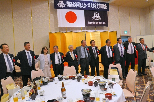 校友会中井邦夫副会長はじめ近隣支部および東大阪市役所支部千陵会の方々を迎え、校友及び関係者56人でした。