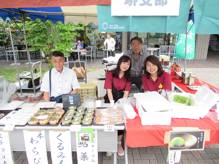 堺支部9回目の堺キャンパス祭に「つぼ市製茶本舗」と「丸市菓子舗」が参加 2019年06月02日 今年で9回目の堺キャンパス祭が6月2日に開催された。堺支部からは「つぼ市製茶本舗」と「丸市菓子舗」が参加。 「つぼ市製茶本舗」は各種の茶葉の販売と、学生さんの協力を得て抹茶アイスクリ-ムを販売し約150食売れ完売した。 「丸市菓子舗」は関大マ-ク入り鮎菓子、くるみ餅、わらび餅などを来場された方に販売した。(鍋島 均)