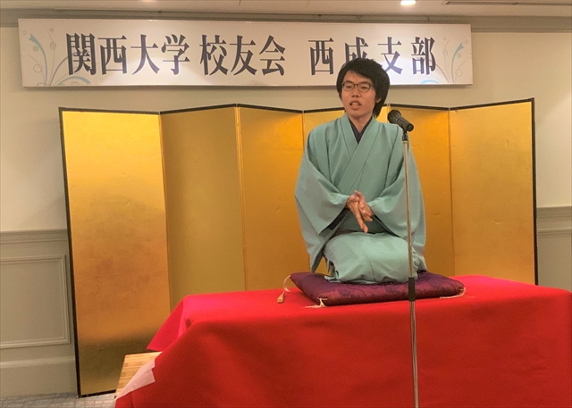 第2部は、落語です。関西大学文化会 落語大学から2人に来ていただきました。千里家紀流と千里家栗ん斗です。演目は千里家紀流さんが「動物園」、千里家栗ん斗さんが「紙さし」です。六代目 桂文枝を生んだ、関大の落研「落語大学」、流石だと感心しながら大笑いをしました。