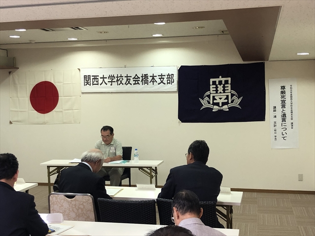 第1部総会では、植島義信支部長の挨拶に始まり、関西大学校友会田中義信副会長からお言葉を賜ったあと、各議案について承認されました。