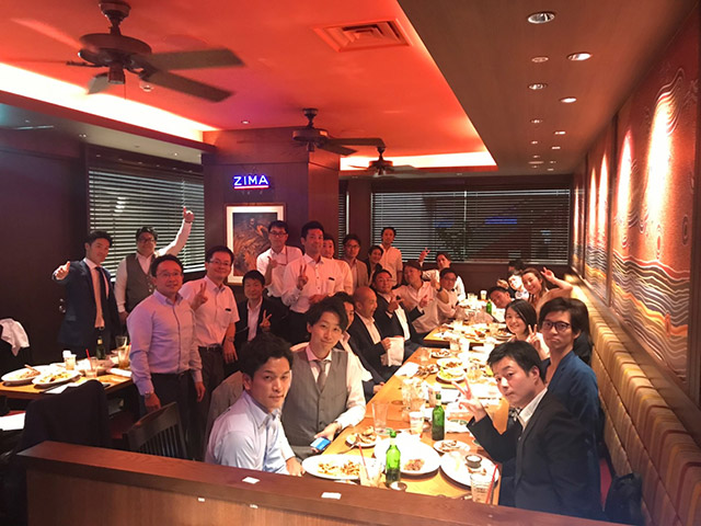 今回は参加者35人と大盛況での開催となった。前回5月の懇親会では、現役学生の参加もあり、就活に対する心構えを若手OBの立場からアドバイスするなど、学生とOBの垣根を超えた新たな交流となったが、今回は若手会らしく39歳以下の経営者が多数参加した。