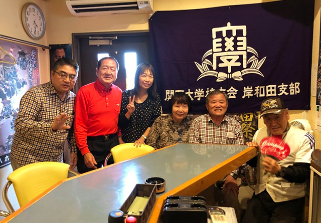 岸和田支部(植野善一支部長)では、「カラオケの会」の第2回を、JR久米田駅最寄りの「まぁちゃん」で開催。最初に全員で学歌斉唱し、植野支部長挨拶の後、西出弘秋事務局長の乾杯の音頭で開会した。