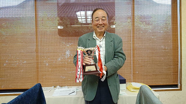 2位には野守親夫氏が、3位は平山一郎氏が入賞。そしてベストグロス賞は81の杉崎堺キャンパス事務局次長が、大波賞は川本氏、小波賞は松原氏、水平賞は松田氏が獲得されました。その他、ニアピン・ドラコン各賞が渡され、和やかな雰囲気の中、表彰式と会食も終宴を迎え、次回来年4月24日の再会を約束し、各自、賞品やお土産を手に帰途に着きました。