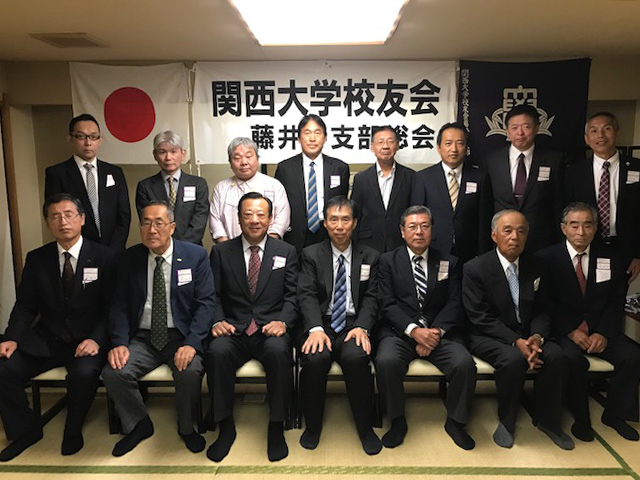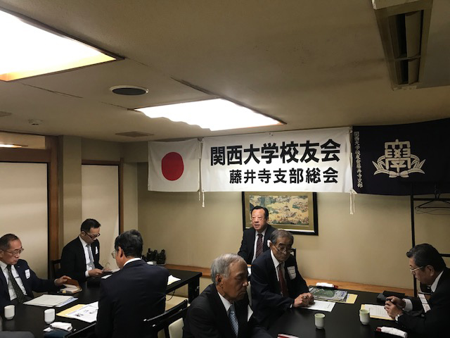 校友会藤井寺支部の総会が藤井寺駅前の「和楽心」で開催された。校友会本部から田中副会長と奥田課長、各近隣の6支部から支部長または副支部長がご来賓として出席された。今回は例年と違い昼間の開催となり12時にスタート。