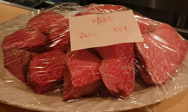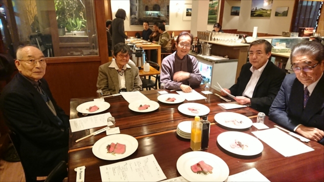 開場はステーキハウスで、マルシン、ひうち、姫路等の珍しい部位の牛肉を堪能した。