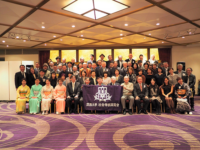 社会学部同窓会(中尾優司会長)は、1月19日にリーガロイヤルホテル大阪にて新年会を開催し、79人が参加。東村高良名誉教授をはじめ、清水和秋教授、古川誠准教授にもご出席いただき、初参加メンバーも多数で盛大に行われました。