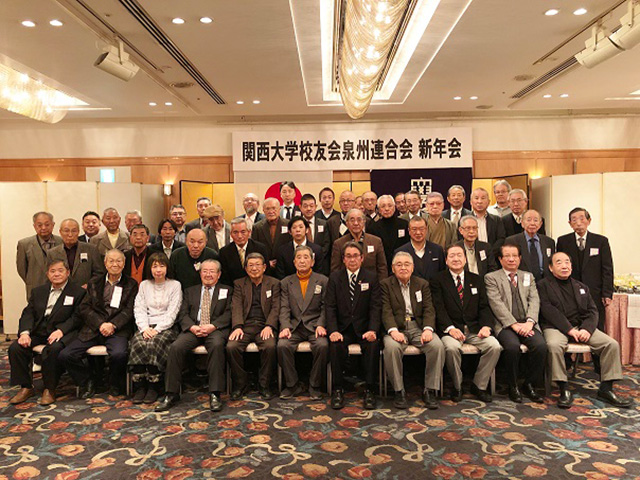 1月19日にアルザ泉大津ホテルレイクアルスターで、泉州連合会(松浪啓一副会長)第6回新年会を開催。グルメ会を兼ね、7支部50人が参集した。