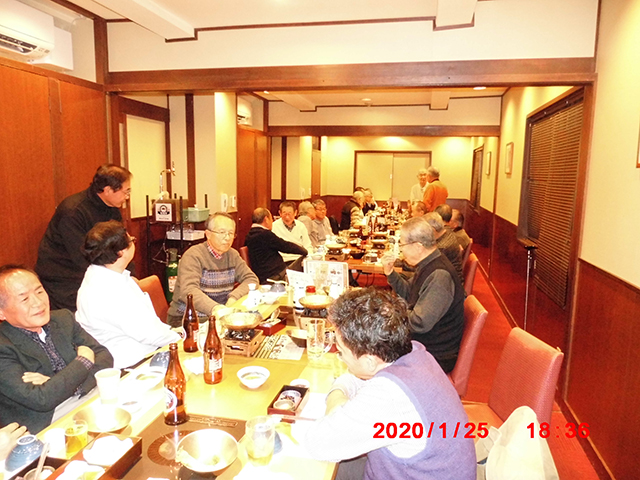 令和2年度の新春互例会が1月25日(土)、市内の和食レストランで27人が参加し、盛大に開催された。役員会を兼ねての新年会でもあり、校友の増強案、事業計画案、同好会運営の在り方、社会連携事業などに関して多くの意見がでた。