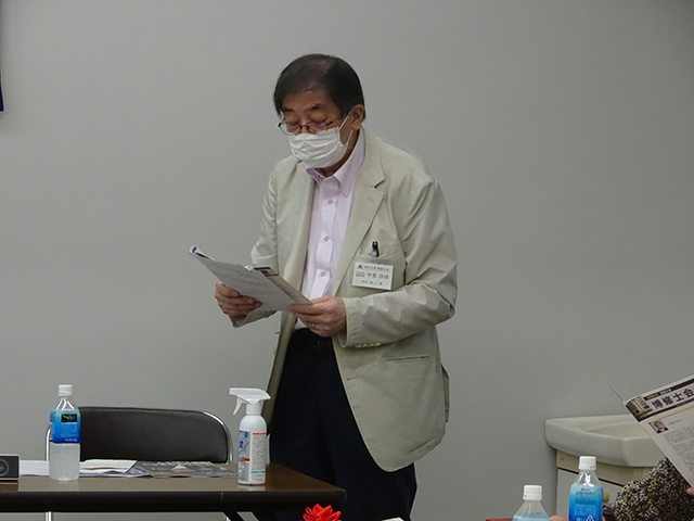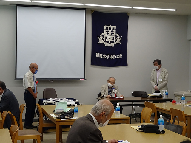 物故者に黙とうを捧げ、飛沫防止の観点から、学歌を一同で聞くことにした。その後、芝井学長を始め来賓からご挨拶を頂戴し、議事に移った。会則に沿って、北嶋会長の議長のもとで、2019年度事業報告と収支決算報告を承認。2020年度一般会計予算、会則の変更(文言等を実態に合わせる)について決議した。今年度は役員改選の年であり、北嶋会長の再選を全会一致で承認し、他の役員については選任していくことで了承した。