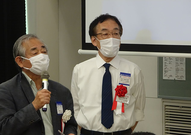 講演は、本学名誉教授の多川則男先生による学術講演「生み出されるデータ量の爆発的増加とハードディスクの高密度大容量化について」。多川先生のご研究は2020年度文部科学大臣表彰科学技術賞を受賞されており、情報処理システムやHDD装置の概要から浮動ヘッド技術や磁気ディスク媒体のイノベーション等に関する独自の技術開発をわかりやすく説明していただいた。SSDとの相違を踏まえた議論も活発に行われ、日本の産業が有する部品の高品質と装置化の相克にも言及する内容だった。
