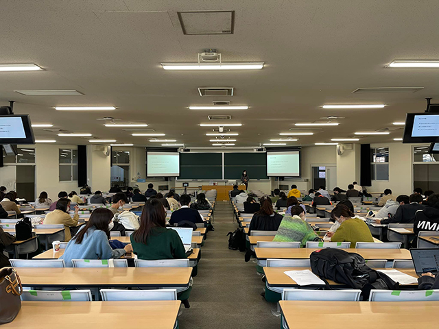 社会保険労務士関大会政策創造学部で寄附講座 『企業福祉と人材育成』 2021年11月26日 社会保険労務士関大会は、母校関西大学政策創造学部で寄附講座『企業福祉と人材育成』を担当しています。 コロナ禍での4年目となる今年度秋学期は、第三講まではオンデマンド、10月15日の第4講から対面講義が再開されています。 写真は、秋景色のキャンパスのなか実施された第10講目講義の様子です。毎年200人前後が履修する人気講座となっています。 学生らは、講義後も講師に質問に来るなど、毎回熱心に参加しています。我々も一層講義に力が入っています!