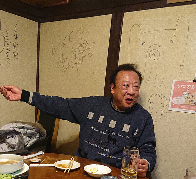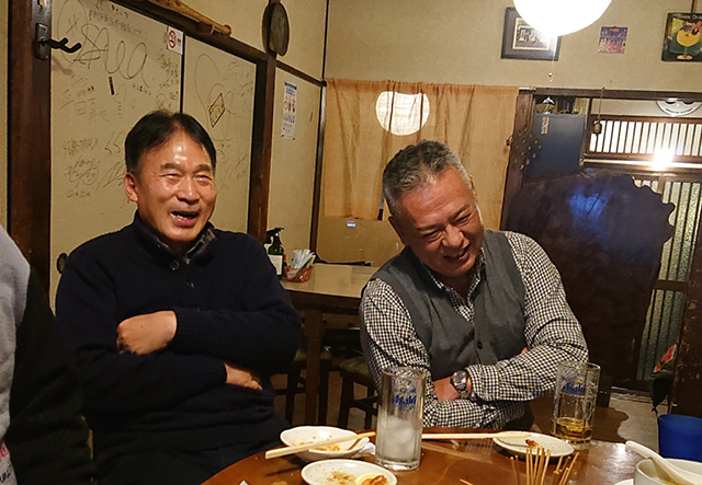 平野支部呵々大笑 平野支部で忘年会を開催 2021年12月04日 2年ぶりに、平野支部(長谷川孝夫支部長)忘年会を「くぐり戸」で行なった。久しぶりの懇親会となり、2時間程度にわたり、参加者の笑いが絶えなかった。 「社会貢献活動の一環として、校友会は現役関大生のボランティア活動を全力で支援します」― 締めの言葉として田中義信相談役(校友会会長)より校友会本部の方針が発表され、お開きとなった。活気みなぎる平野支部が戻ってきた。 (長野隆哉)