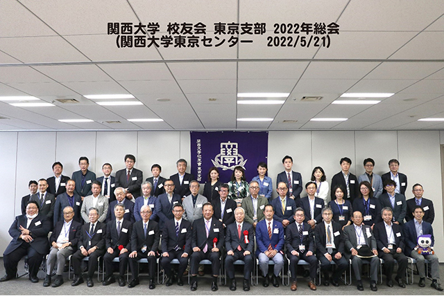 東京支部総会(高能彰支部長)を関西大学東京センターで開催。校友会より田中会長・荒堀事務局長、河田東京センター長、神奈川・埼玉・千葉の各支部役員を来賓として迎えた。参加者は、昭和31年卒から令和4年卒までの幅広い世代の校友47人(リモート参加3人含む)。
