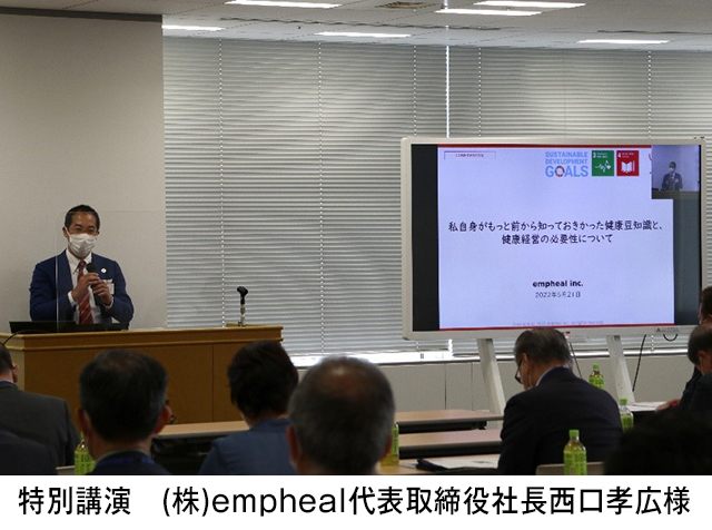 特別講演には、株式会社empheal代表取締役社長西口孝広様(平成11年工学部卒)をお招きし、「健康教育を通じ国民の健康リテラシーを高めること」「それぞれの症状にあった最適な医療に出会うことの重要性」について講義をいただいた。健康という、誰にも身近なテーマについて勉強する素晴らしい機会となった。