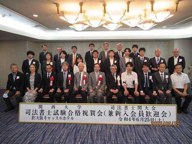 関西大学より、前田裕学長、髙作正博法学部長、田中義昭校友会副会長、奥田惠造校友会事務局課長を来賓としてお迎えし、令和元年度・2年度・3年度の各合格者及び既会員出席のもと、祝賀会は滞りなく幕を開けました。
