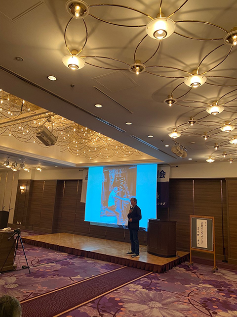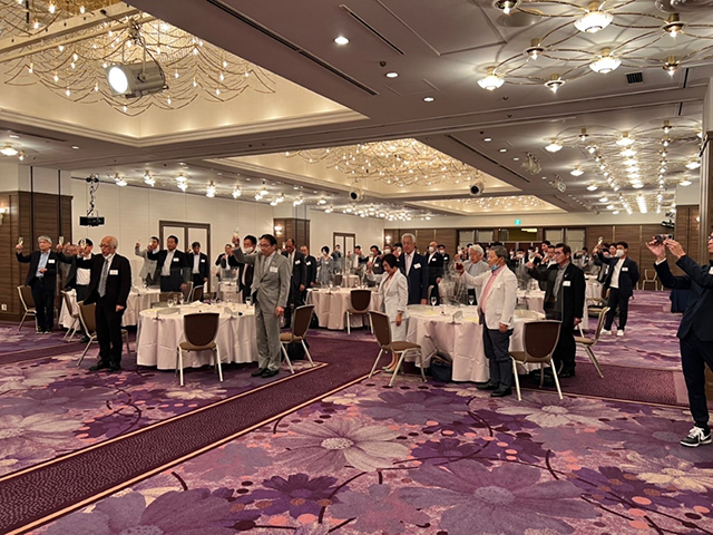 小休憩の間に辰野様と名刺交換するメンバーの列が伸び、講演の反響の大きさが垣間見られた。第2部懇親会では来賓の芝井敬司理事長、前田裕学長よりご挨拶があり、池内啓三前理事長の乾杯音頭で懇親会がスタート。新会員2人の挨拶、ゲスト7人の挨拶があり終始和やかなムードで進行した。最後に本間副会長の挨拶で、無事に閉会となった。
