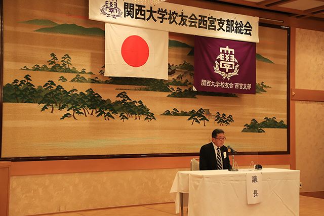 関西大学校友会西宮支部は9月11日(日)、西宮神社会館において来賓、会員併せて約50人が参加し、3年ぶりの総会・懇親会を開催。総会は司会の脇山公彦幹事長による開会宣言ではじまり、石原美之副支部長の指揮による学歌斉唱(黙唱)、物故者への黙祷。小坂支部長からは、「一昨年中止、昨年は総会のみとなったが今年は感染症対策をし、規模縮小ながらも、懇親会付きの総会を開催した。感染症が収束しないなか、役員会を中心に活動してきたが、徐々に正常な姿に戻していきたい」との挨拶がありました。