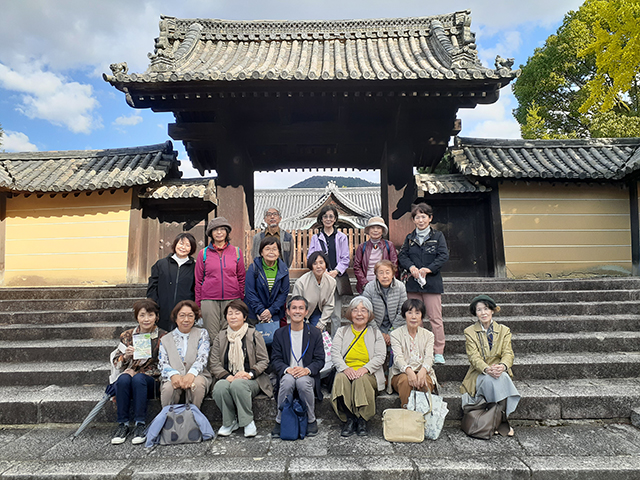 さて、随心院では、「小町」晩年の「卒塔婆小町座像」を大変興味深く拝見しました。「小町」の「文塚」「化粧の井戸」の遺跡も。絶世の美女といわれた「小町」も晩年の姿は、、、一同安堵と納得でした!「極彩色梅匂小町絵図」(2009年だるま商店作)は「小町」の生涯が鮮やかに描かれていて、一見の価値あり。穏やかな秋の日に、久し振りのリアル京都散策。16人の参加メンバー一同、大満足の1日でした。紅葉は10日程後とのことでした。