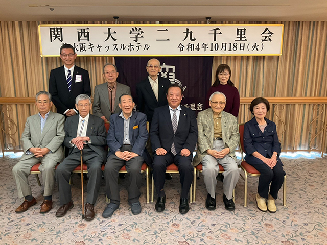 大阪キャッスルホテルにおいて、田中校友会会長、荒堀事務局長を来賓にお迎えして定時総会を開催した。会員は90歳越えのため出席者8人と少なかったが、無理を承知で今後も継続を希望し、楽しく歓談した。来賓のお二人から母校の現状についてご報告いただき、同期会としては最高齢であることに誇りを持ってほしいとのお言葉に、深く感謝した。