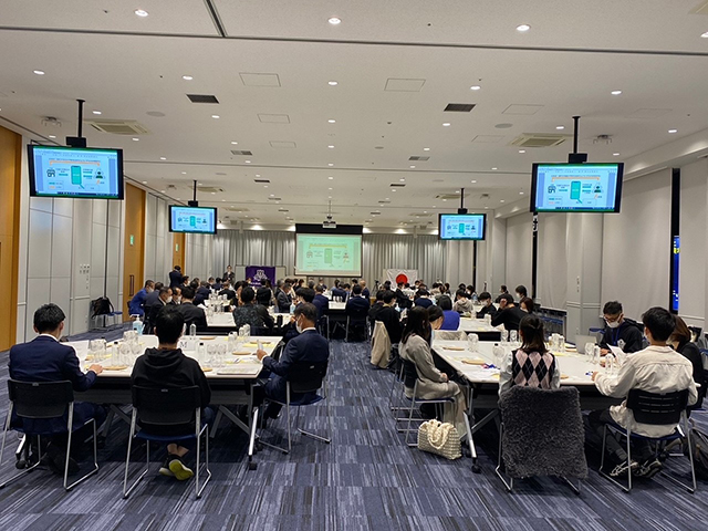 山岡塾活動報告として、山岡塾コーディネーターである宮田将様より学生の活動のご報告と、山岡塾生ら全6チームからフードロスやフェアトレードなど、さまざまな社会課題を解決するための構想プラン及び検討状況に関するプレゼンがあった。