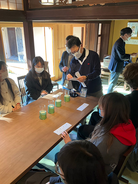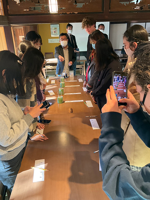 講義後は、甘口か辛口などを当てるクイズ形式で「天野酒」の利き酒を行い、全員が田中義信校友会会長とともに「天野酒」の梅酒や甘酒の試飲を楽しみました。校友会には全国に121の地域支部があり、今後は各支部の特色を生かして、留学生と交流を深めることが期待されます。