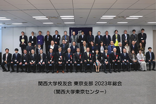 東京支部総会(高能彰支部長)を「2023年はWith/Afterコロナ下での活発な活動を推進」をテーマに、関西大学東京センターで開催。校友会より田中会長・荒堀事務局長、河田東京センター長、神奈川・埼玉・千葉の各支部役員を来賓として迎え、昭和37年卒から令和3年卒までの幅広い世代の校友54人が参集した。