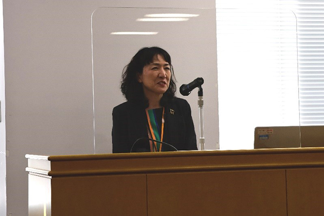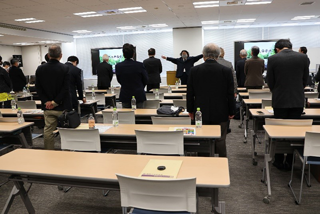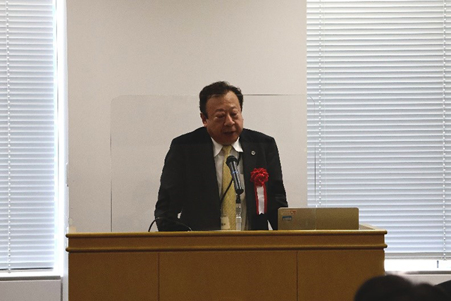 第一部総会は応援団OB辻本剛健常任幹事の指揮で学歌斉唱から始まり、物故者および3.11東日本大震災で犠牲となられた方々に対し黙祷をささげ、高能支部長からはWith/Afterコロナ下での活発な活動を推進したいとの挨拶があった。来賓を代表して、田中校友会長及び河田東京センター長から母校や校友会活動の現状報告と激励をいただいた。