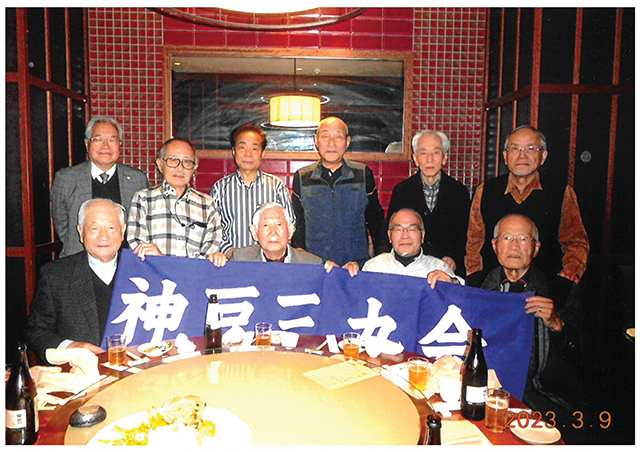 神戸三九会まだまだ元気 2023年03月09日 3年振りに神戸三宮の中国料理「神仙閣」にて総会を開催し、10名の元気者が集まりました。まだまだ元気で活躍する自営業の面々、ゴルフでエージシュートをめざす者、畑仕事に精を出す者、社交ダンスにはまり込んでいる者、全国の温泉旅行を楽しんでいる者、グラウンドゴルフに興ずる者など。93歳まで会の継続を目標にして、現役時代を懐かしみながら今回の再会を楽しみました。 事務局 石山 康弘(078-928-7510)