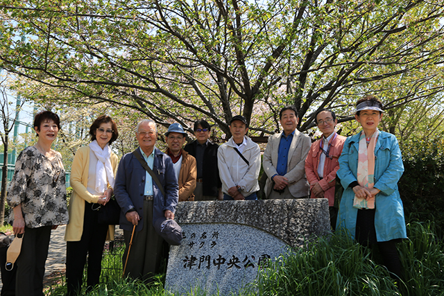 当日は、好天気に恵まれ、会場の津門中央公園に集合。ソメイヨシノの桜吹雪が舞うなか、4月中旬が見頃になる晩生の「西宮権現平桜」の木を見上げると・・・19歳の権現平桜は育ち盛りで、緑の葉をいっぱいに茂らせていました。どうやら、1週間前くらいが見頃だったようです。