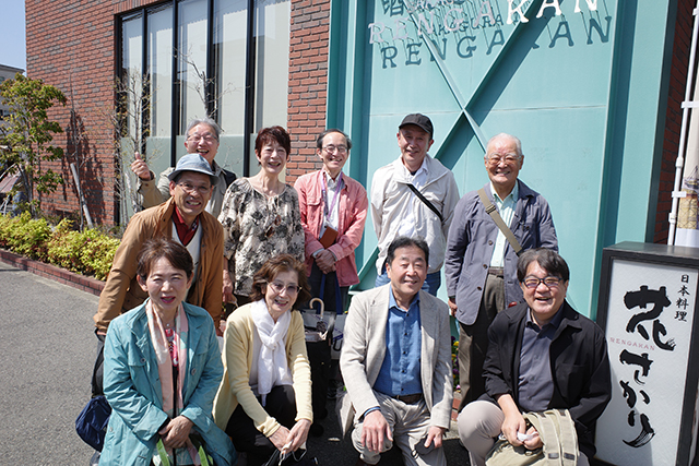 記念樹の元気な姿を確認した後、近くの日本盛酒蔵通り煉瓦館へ。レストランで銘酒とお料理を楽しみながら、関大現役生の活躍や今年度の支部活動について、明るく語り合いました。