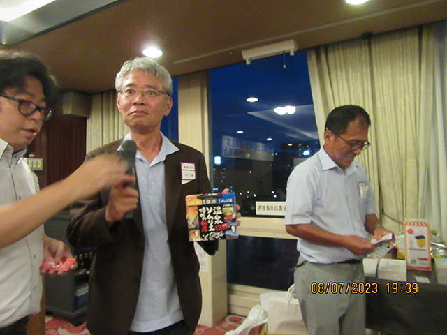 次に、鶴見支部恒例のビンゴゲーム。重里さん、井藤さん、川上さんにより、楽しい商品をゲットできた校友はニコニコ顔です、ちなみに私は当たりませんでした。