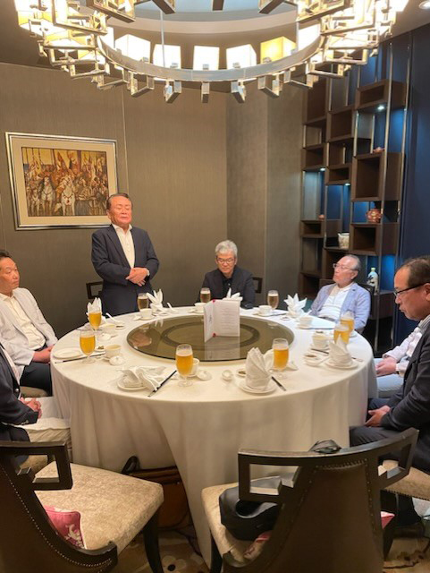 マレーシア千里会は、現在、会員6人のようで、増員をめざして頑張っているとのこと。当会福田泰久会長(センコーグループホールディングス社長)からは「これだけの多くの校友が参加してくれてありがたい。先日、芝井敬司理事長が"少子化の影響で日本の大学経営は非常に厳しくなる。無試験になる可能性もあるし、統廃合の可能性もある"とお話されていた。こうして海外に出ると、日本にいてはわからないことも学べるし、日常英語はぜひ習得したい」と話があった。初参加者として東北福島支部の松永支部長の令夫人の江里様、経営されているシージーエム福島の経営企画部長大隅敦子様の女性2人も参加され、花を添えていただいた。校友会からは副会長の芋縄隆史様、シンガポールから美林浩由様に挨拶をいただいた後、当会藤原輝之副会長の「大阪締め」で中締め。大いに盛り上がり、初日を終えた。