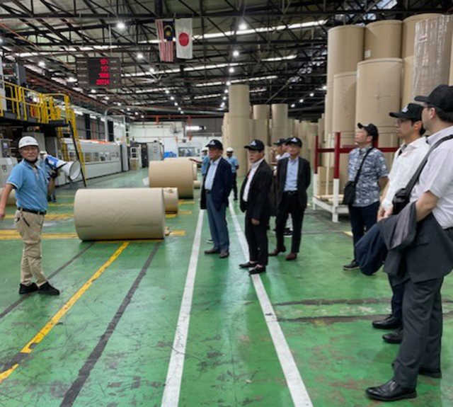 2日目の13日は8時30分より全員が2件の視察研修に出かけた。初めにポートケラン港の港湾施設を見学。豊田通商グループ会社の代表の藤本和弥様と役員の島田剛様の案内で広大な施設内をバスに乗ったままで説明を受けた。第1倉庫群がD1~D4、新倉庫D5~D7、コンテナ数が膨大、コンテナバースではコンテナ船への積み下ろしを見学した後、ホールにて概要説明を受けた。通貨はリンギット、人口3,300万人、マレー系はイスラム教で約6割、中国系、インド系で構成する。マレーシアには現在1,230社の日系企業が進出している。記念撮影の後、一行は飲茶レストランで昼食をとり、次の見学地であるレンゴーパッケージングに向かった。同社はクアラルンプールから近いシャーラム地区の工場団地内にある。到着すると、大西洋史社長自らの歓迎を受け、工場内会議室でレクチャーを受けた。大西社長は、今回同行の日東紙器木野田社長と旧知の間柄で関大経済学部卒の校友である。日本人は社長、副社長(女性)、役員の生産部長の3人で400万平米の工場に145人(内女性41人)が勤務するレンゴーの100%子会社である。段ボール箱の種類(A・B・W)の説明を受け、同社からいただいたレンゴーマレーシアの帽子を被り工場内の見学を行った。原紙からシートを作り、印刷機、裁断に至り、段ボール箱が完成する工程を学んだ。水害対策の施設も見学の後、同社前にて記念撮影の後、一行はペトロナスツインタワーへ向かい記念撮影。夕食はマレー料理。豊田通商様からは現地法人社長の荘司憲一社長様、役員の岡本正様も参加いただき有意義な会食となった。食事後はセンコー様が日本からの輸出を担当されている現地のドン・キホーテ店を見学した後、2日目が終了。