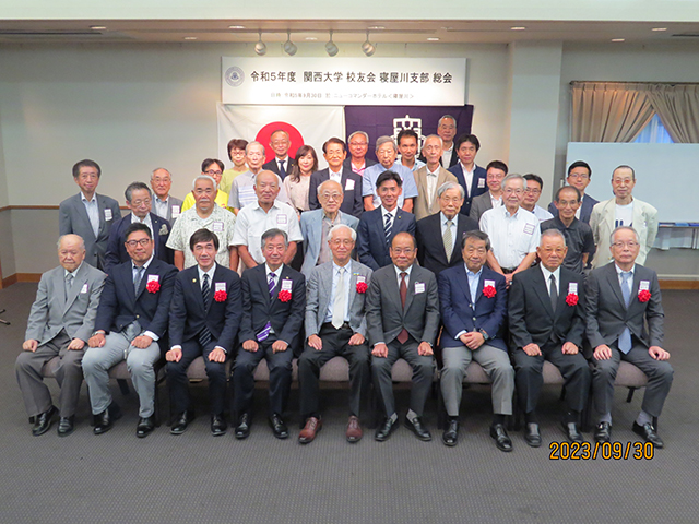 寝屋川支部令和5年度支部総会を開催 2023年09月30日 令和5年度支部総会を9月30日に開催させていただきました。当日は本部より田中義昭校友会副会長をお招きし、また新たな校友会会員も多数参加していただき和やかなうち、盛会裏に終えることができました。 寝屋川支部支部長 北川光昭