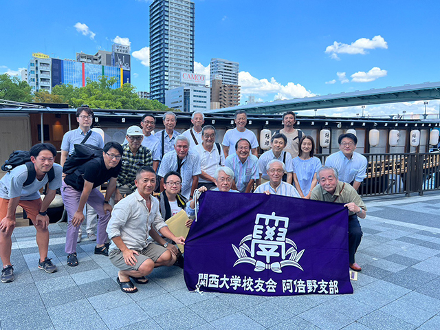 残暑が残るなかでしたが抜けるような青空のもと、昨年に引続き大阪屋形船を貸し切って2023年度総会・懇親会を開催しました。校友会本部から北嶋浩一参与・田中義昭副会長・事務局の工藤竜太様にお越しいただき、初参加の方も含め20人が集まりました。