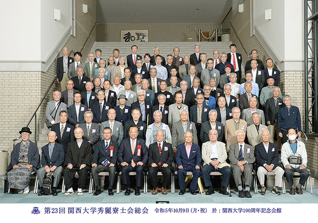 100周年記念会館に全国から寮友85人が参集。校友会長・田中義信様と事務局長・荒堀善文様を来賓に迎え、4年振りとなる秀麗寮士会第23回総会を開催した。