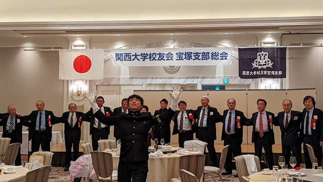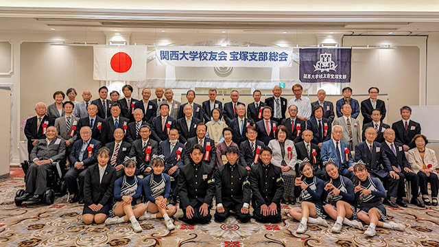 宝塚支部令和5年度宝塚支部総会・懇親会を開催 2023年11月04日 宝塚ホテルにて総会を開催。引き続き開催した懇親会には、大学、近隣支部からの来賓をお招きし、会員合わせて60人が集まりました。 アトラクションとしては、応援団リーダー部とチアリーダー部が演舞を行い、また、福引き大会では、関大のゴーフル、胡蝶蘭そして、特賞としては「宝塚ホテル金券」が3人の方に当たりました。 多くの校友との旧交を温めることのできる楽しい時間となりました。