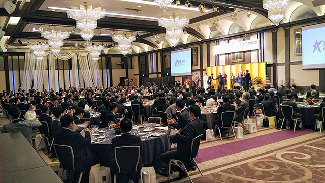 お祝いのビデオメッセージが流れ、フィギュアスケーター 高橋大輔氏、アナウンサー 宮根誠司氏、歌舞伎役者・俳優 片岡愛之助氏など、関西大学関係者の各業界著名人11人が華を添えた。