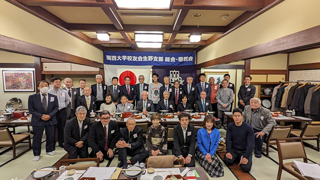 生野支部初参加者増! 新規獲得をめざす! 2023年11月25日 令和5年11月25日、例年通り生野支部総会を桃谷がんこにて開催した。 校友会副会長田中義昭氏、市内支部連合会会長仁井ひろみ氏をはじめ、近隣支部からも多数ご参加いただき、また来賓以上の会員も集まり和気藹々とした総会・親睦会となった。 なにより、新規会員獲得のためイベントを打ってきた甲斐もあり、初参加者3人と着実に成果が上がっていると肌で感じた。 来年度も校友活動に力を入れていきたい。 (幹事長:本郷勝彦)