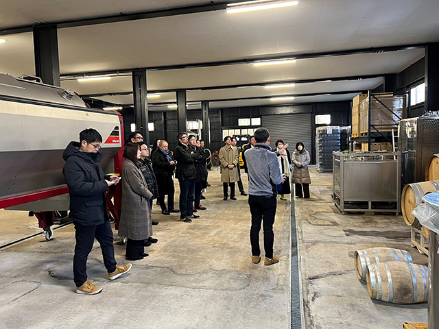 2024年2月3日(土)、関西大学経済人クラブ第241回特別例会が、金銅重行幹事が代表取締役を務める株式会社河内ワイン(大阪府羽曳野市駒ヶ谷1027)のワイナリーにて開催され、会員・ゲスト参加者を合わせて24人が参加しました。