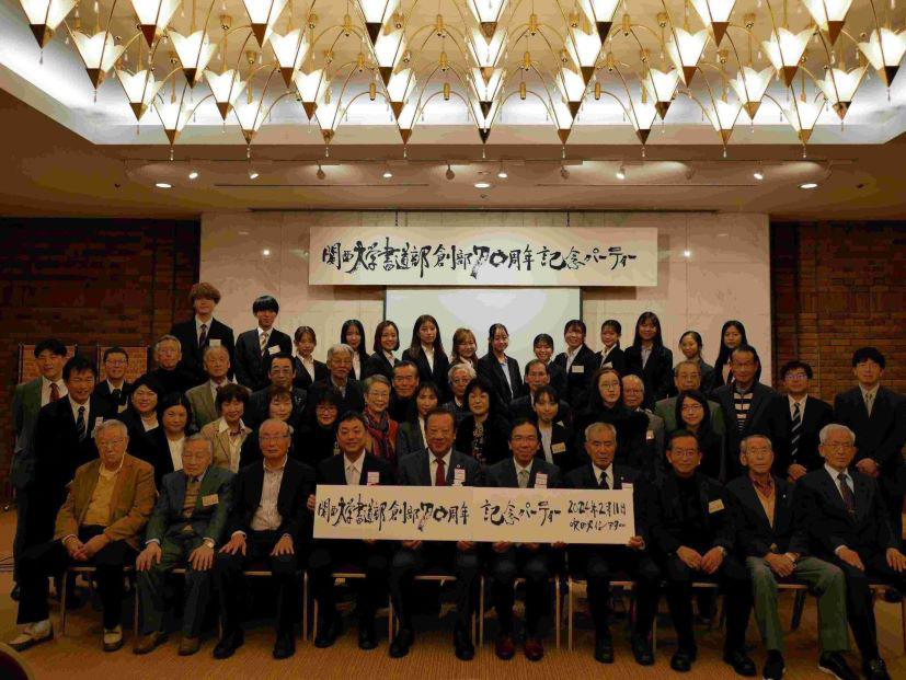 2022年に創部70周年を迎えた書道部の記念行事が2024年2月に行われた。2/11に吹田メイシアターで開催した記念パーティーは来賓に前田学長、田中校友会会長、中瀬文化OB・OG会会長をお迎えし、昭和、平成、令和卒のOB・OG35人、現役部員23人が参加のもと、書道部の歴史を振り返り、盛大にお祝いした。