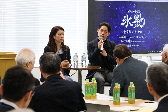 続いて総会特別企画として、校友である高橋大輔さん・村元哉中さん(かなだいペア)に登壇していただき、岡田支部長・柳谷常任幹事との校友トークショーを開催しました。