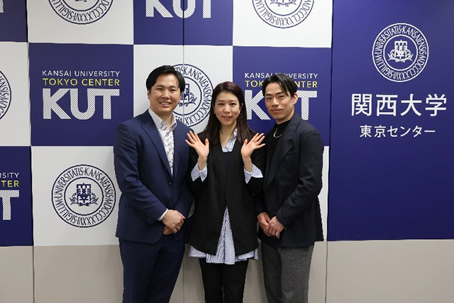 学生時代の思い出から、二人の出会いや初めてペアで滑った時の状況、お互いの気持ちがぶつかった時の対処法など、話し方・聞き方の全員が関大校友ということもあって、気さくに親しみを持ってお話をしていただきました。またトークショー後には各テーブルを回っていただき、校友との写真撮影もさせていただきました。