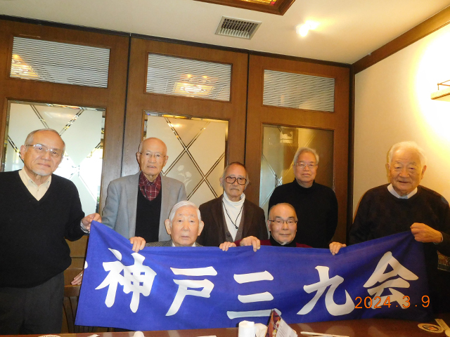 神戸三九会設立40周年を祝う 総会を開催 2024年03月09日 昭和59年神戸支部発足時に同期の有志が集まり、設立を決意。 会の名称を「神戸三九会」と称し、年2回、3月9日(総会)、9月3日(定例会)開催することとしました。 若いときは、夫婦同伴での開催や、一泊旅行又、「体育39会」「東京三九会」とも交流し、93歳を以って閉会とすることを決定。あと10年頑張ります。 (事務局 石山 康弘 090-2382-9573)