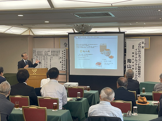 その後、第二部の講演会では、関西大学商学部の陶山計介名誉教授に「今日におけるブランド戦略経営とインターナルブランディングの課題」と題してご講演いただきました。