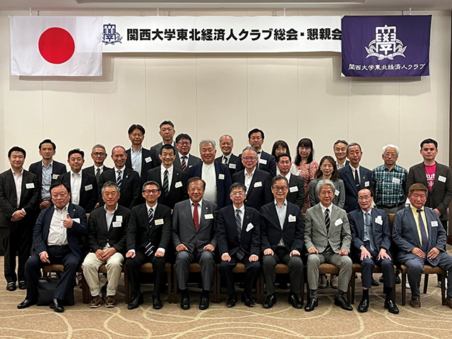 設立から2周年を迎えた東北経済人クラブは7/20(土)Westinホテル仙台で田中校友会長と全国各地の経済人クラブや社会学部同窓会の代表者にご臨席頂き、令和6年度総会・セミナー・懇親会を開催した。総会では、常に会員の交流を深め、全日本大学女子駅伝での応援を通じて学生支援と校友の親睦を図り、関西大学ブランドを東北から発信することを事業計画として決定した。セミナーでは、戦国マーケティング(株)代表取締役の福永雅文氏(1986年社会学部卒)より『小が大に勝つランチェスター戦略とは』をご講演いただき大きな反響が得られた。懇親会の最後に逍遙歌を歌い上げ散会となった。
