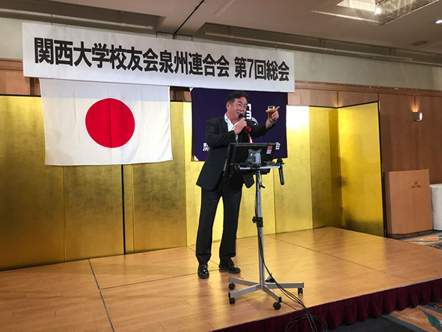 泉州連合会(茶谷輝和会長)は、第7回総会をホテルレイクアルスター泉大津で開催し、本部組織部永尾俊一部長らを来賓に迎え、6支部の校友・来賓、総勢49人が出席した。